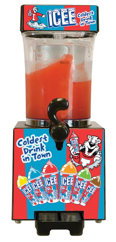 Amazon Com Icee Slushie Making Machine Includes X2 16 9 Fluid Oz Bottles Of Syrup X1 Blue Raspberry X1 Cherry Measures 7 5 X 18 X 6 25 Ac Powered Multi Large Home Kitchen